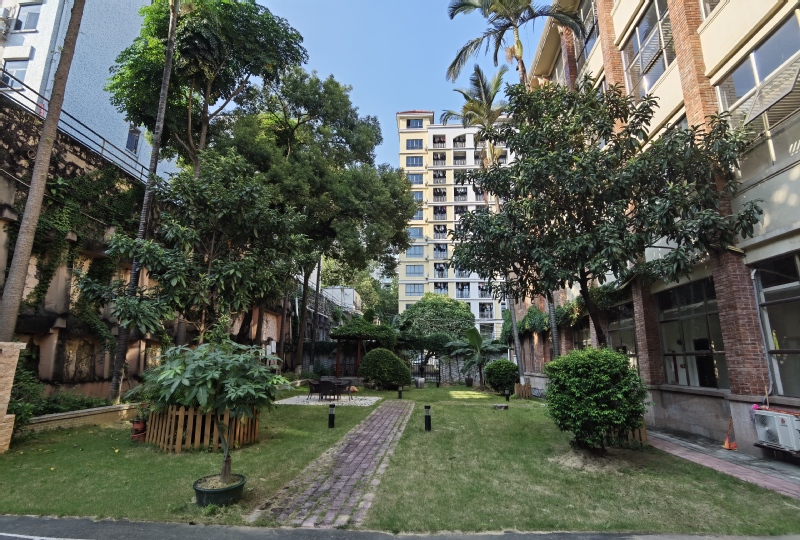 瘦狗岭脚下,校园深处,广州华侨学生接待站,琅琅书声相闻,鸟语花香相伴,却可于忙忙碌碌中撷取一片闲适和清幽。接待站后有一庭院,可休闲小憩,亦可办小型庆典或酒会,中西合璧,历史与当下轻轻碰撞,或许可产生别样感触。
