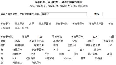 2、词语聚类、词语联想、词语扩展在线检索 对所有140万个网页中文档频数大于20的每一关键词聚类后得到11万个关键词的聚类词语表。 关键词是事先为文档自动标注的主题词,如“智能手机”、“实木地板”、“奥迪A6”。 演示地址: