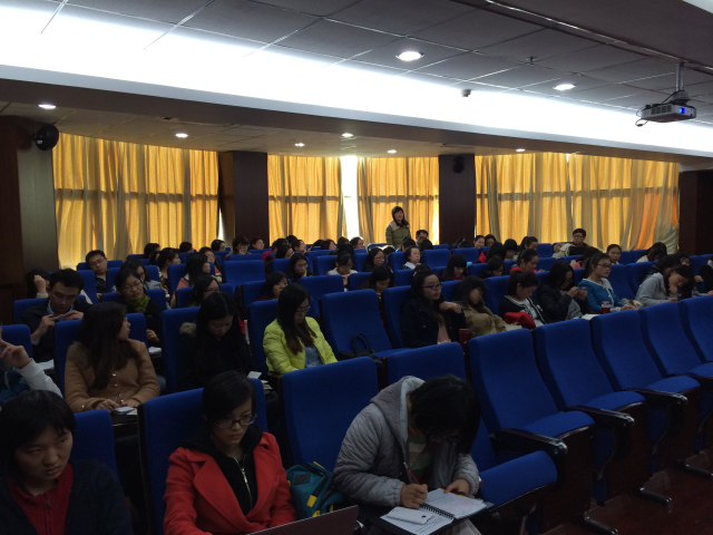 吴老师首先谈了自己教学方面的经验和心得。从开学第一节课、第一周如何教学,听写的方式,课堂语言的使用,多媒体的使用,词典的使用,让学生记笔记等小问题入手,告诉我们要上好课一定要用“心”,用心备课、用心教学。良好的班风是学习的重要保证,对于“班级管理”,吴老师在长期的班主任工作中总结出了一套方法,比如固定学生位置、物色好班长、第二周再给学生介绍学校的规章制度、定期举行班级活动等,另外,“微信”这一交流平台正迅速“占领”每个人的手机,建立班级微信群,及时与学生沟通交流,也是班级管理一种很好的方式。吴老师特别强调,作为留学生班的班主任,一定要严格,不要因为学生是外国人而对他们的要求有所降低,比如上课吃东西、玩手机,这在她的课堂上是绝对禁止的。但同时,作为班主任,也一定要让学生感受到来自老师的温暖,比如对缺课的学生一定要及时与他们联系,了解缺课的原因,对在学习和生活上遇到问题的学生,她一般会私下与他们聊天,为他们排忧解难,“他们就像我的孩子一样”这句话吴老师在沙龙上说过好几次。也许正是 “严格”和“温情”双管齐下,让吴老师赢得了学生的心,建设了一个又一个优秀的班集体。